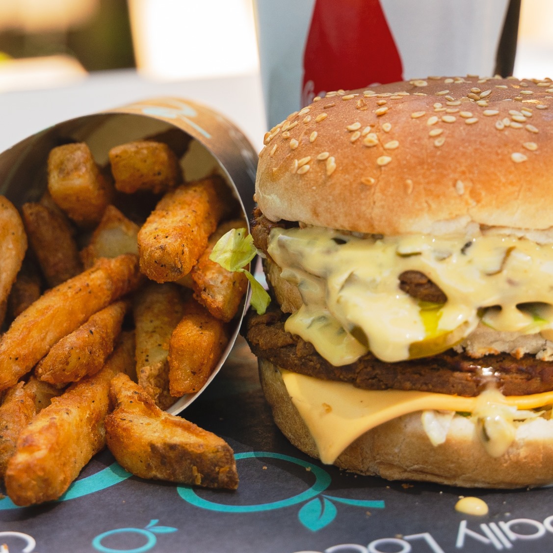 Веганська мережа пропонує звичне меню ресторанів швидкого харчування, але всі страви приготовані з рослинних продуктів. Наприклад, там є бутерброди на сніданок з веганським чеддером та яєчнею на основі тофу, гамбургери з котлетами із нуту та веганським беконом, салати, молочні коктейлі з молока нетваринного походження.