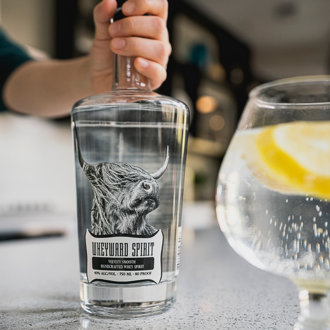 Слідуючи цій концепції, Wheyward Spirit знайшла спосіб створити справжній харчовий спирт із сироватки — рідкого побічного продукту виробництва сиру.