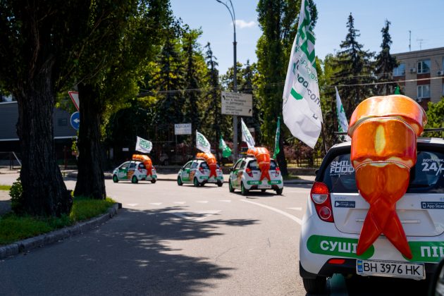 Не тільки. Є кур’єри на велосипедах, електросамокатах, піші. Під час заторів діє система естафет. Це коли кур’єр на велосипеді чи пішки обходить тянучку та передає замовлення водію на «зеленій дорозі». Так клієнт швидше отримає вечерю.