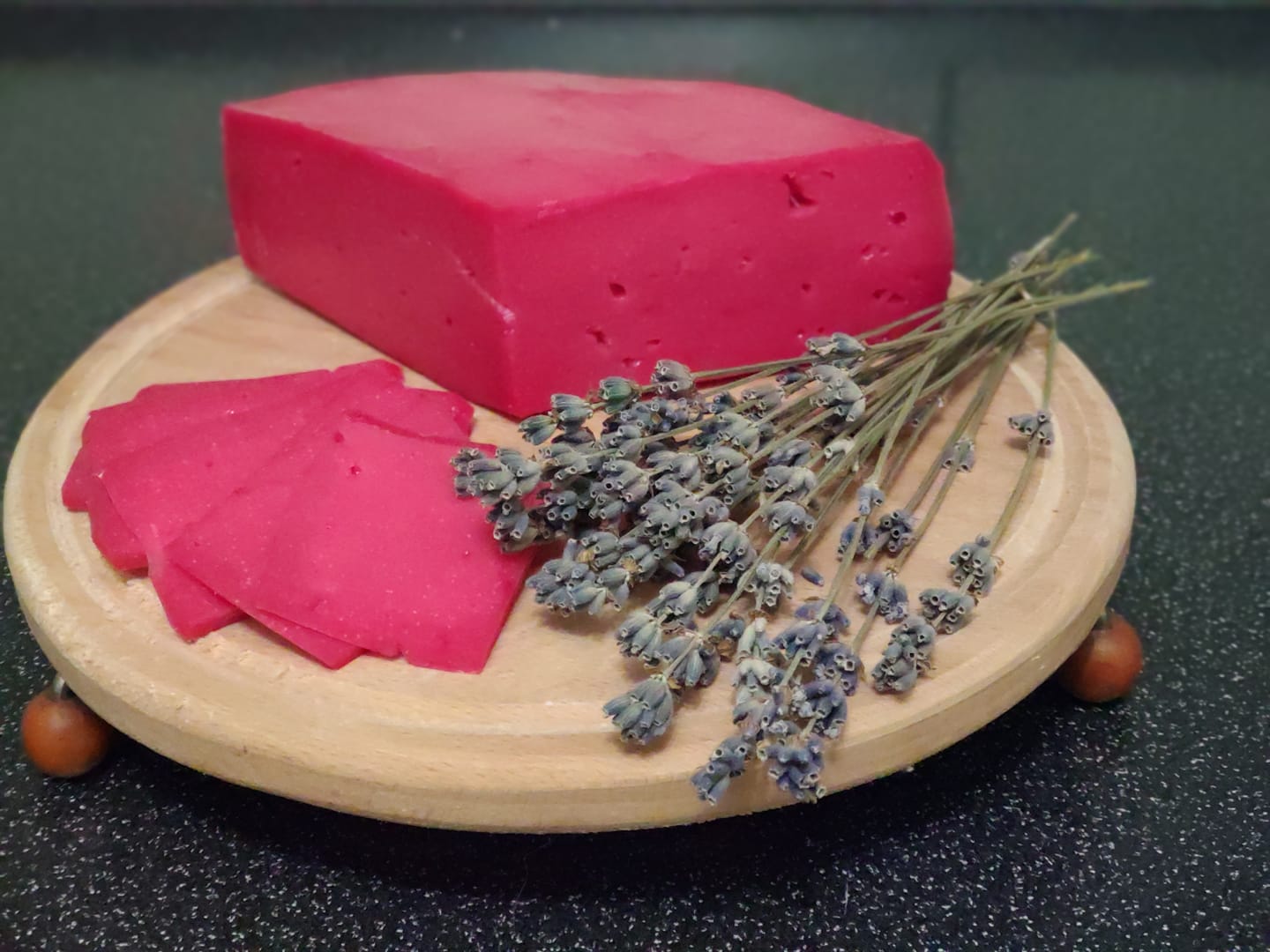 Інша позиція — твердий сир «Лавандовий кум». Його створюють на основі італійського напівм’якого сиру качота, що не один день визрівав в лаванді. Це додає цьому сиру ніжний квітковий смак та аромат.