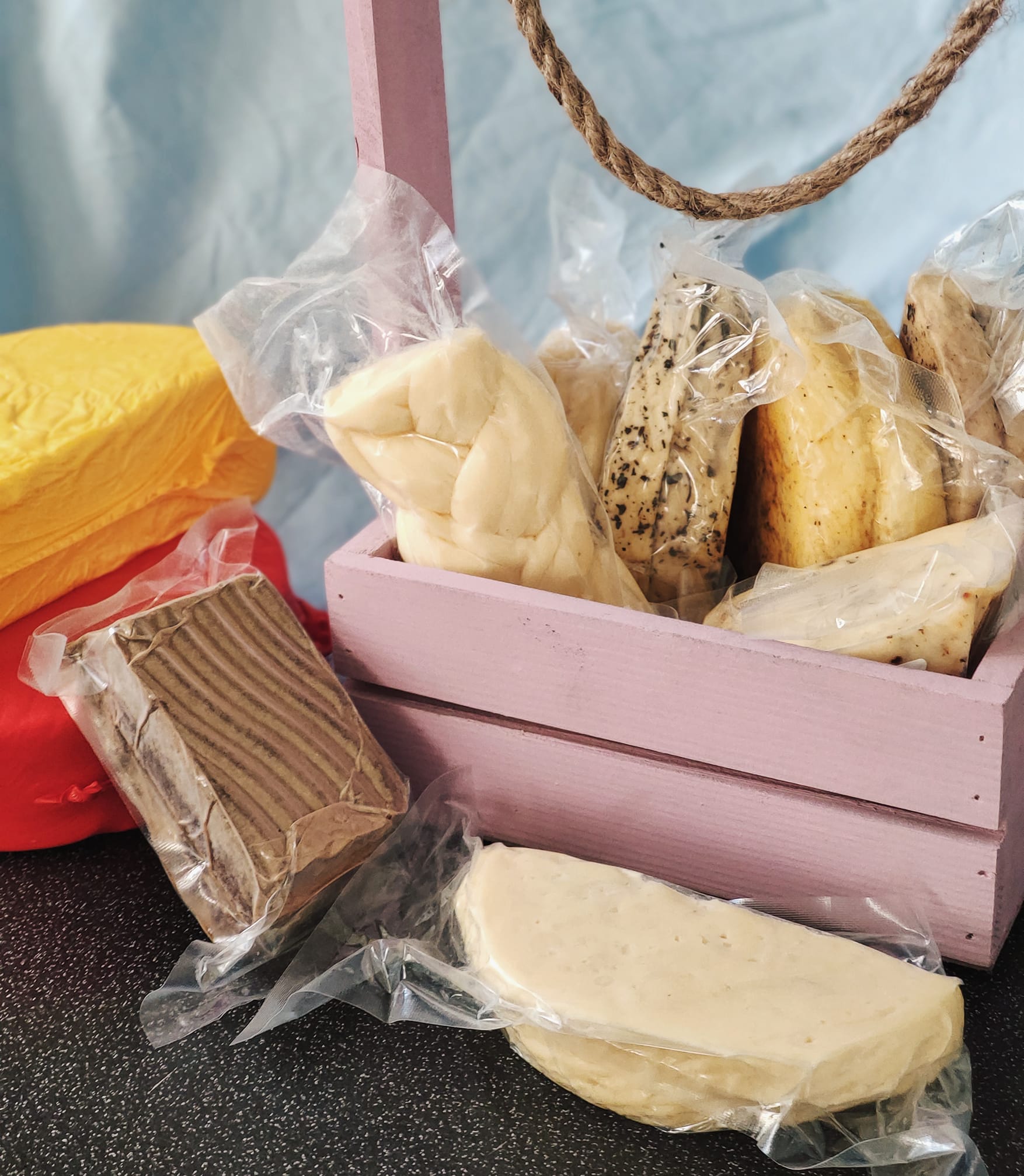 Сири створюються вручну з цільного коров’ячого молока, яке постачають місцеві фермери. В асортименті: качота та халумі з різними наповнювачами, брюност, рікота, сулугуні та авторський сир під назвою «П’яний Кум».
