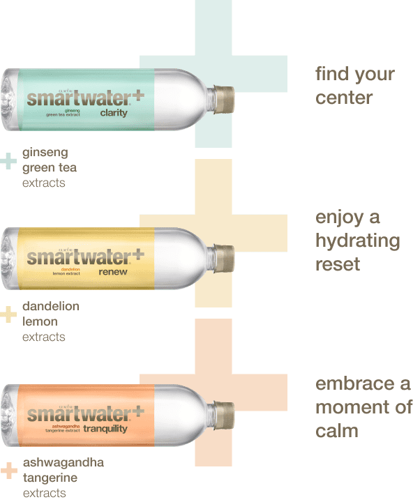 Кожен варіант smartwater+ містить 10 калорій і пропонується в новій пляшці об’ємом 700 мл з напівпрозорою етикеткою.