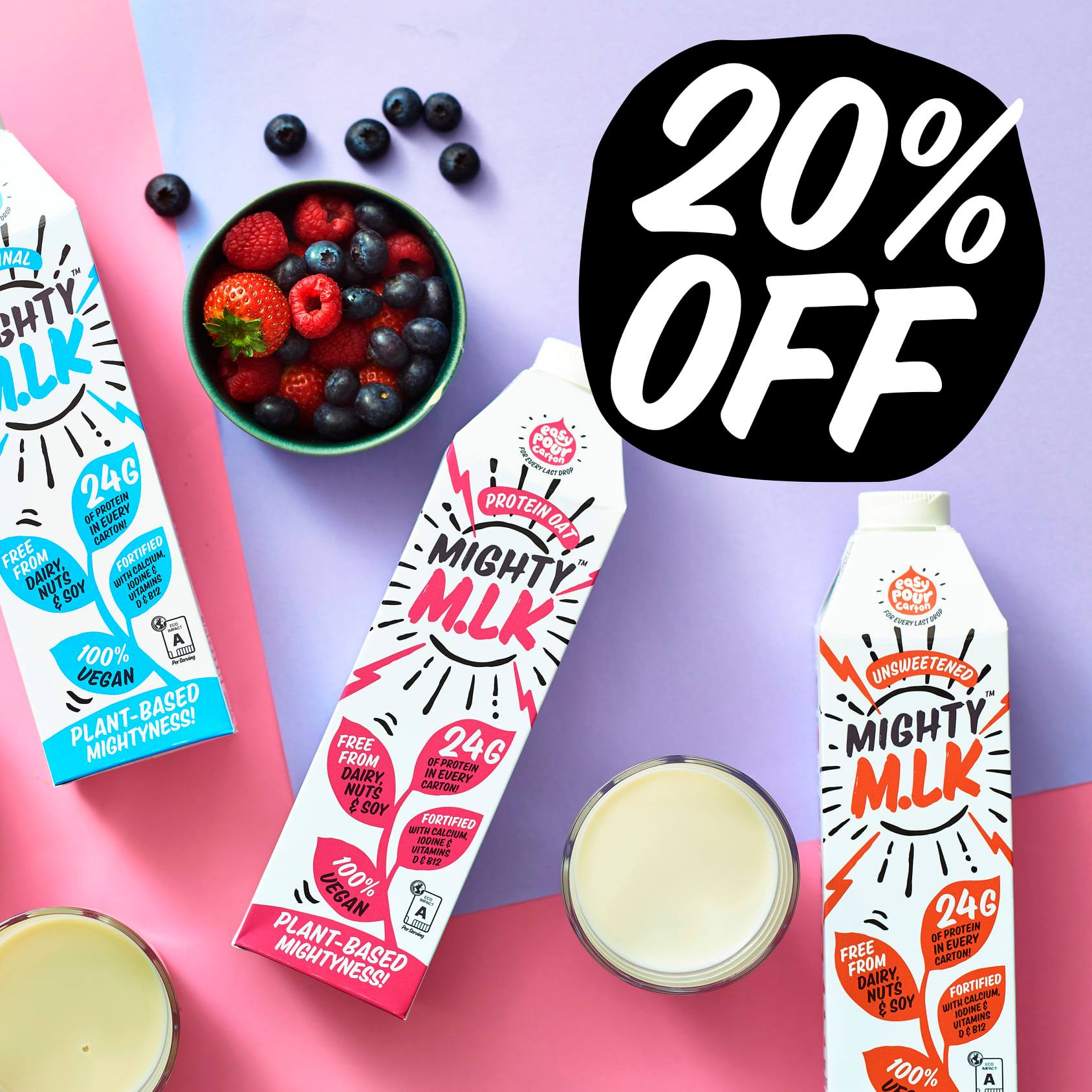 Спочатку стартап був відомий своїм молоком на основі гороху. Але Mighty розширив асортимент, і тепер виготовляє продукти на основі вівса, веганські білкові порошки та коктейлі.