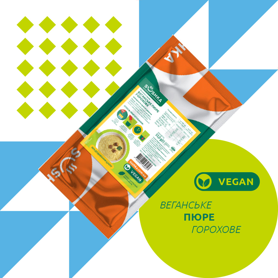 VEGAN-асортимент лінійки складається з 5 позицій: кускус по-східному, гороховий суп, картопляне пюре з цибулею, пюре горохове та гречана каша з овочами.
