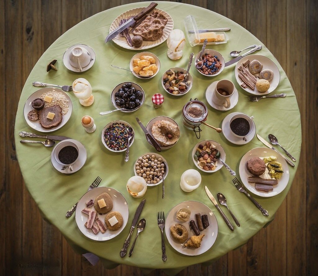 З того моменту вона розрослася до трьох столів, накритих до сніданку, вечері та десерту.