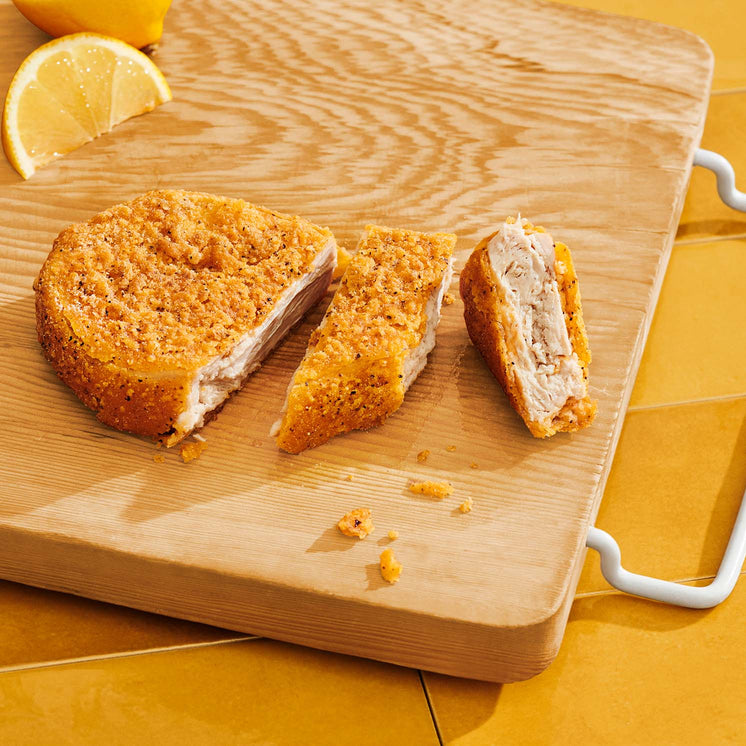 Курячі котлети Meati з «грибного м’яса» представлені у класичному варіанті та хрусткі в паніровці.