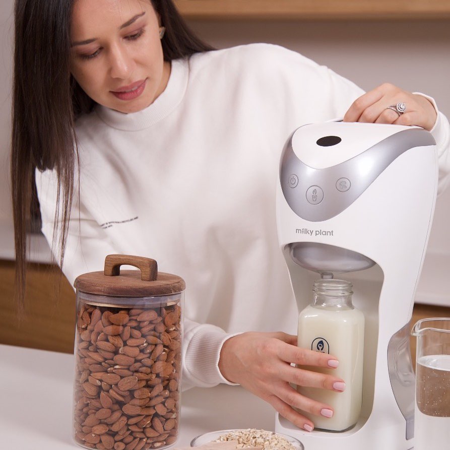 Щоб отримати молоко, ви просто додаєте горіхи, насіння або рослини на свій вибір, натискаєте кнопку, змішуєте та випиваєте склянку молока менш ніж за три хвилини.