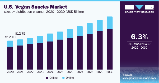 З 2022 р. до 2030 р. сегмент веганських закусок зростатиме на 6,9% щороку