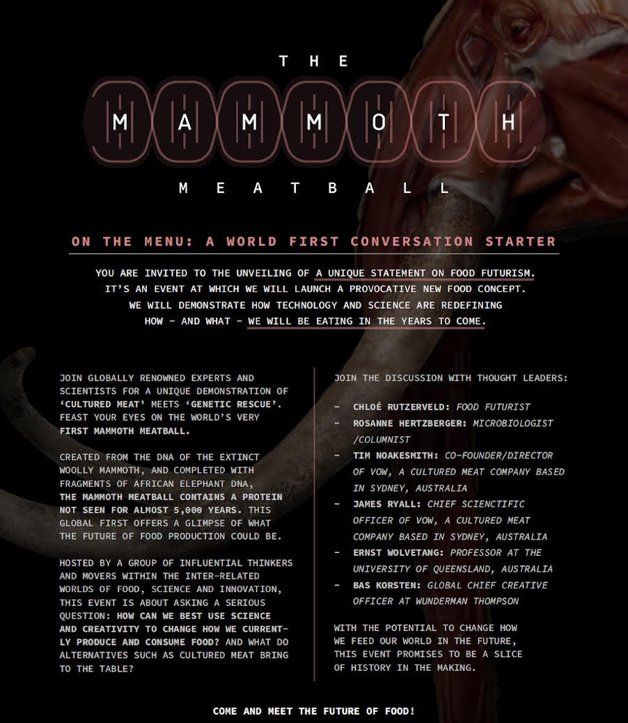 Мамонтова фрикаделька — символічний продукт, який демонструє можливості створення нових видів м’яса, навіть того, яке більше недоступне через втрату біорізноманіття та зміни клімату.
