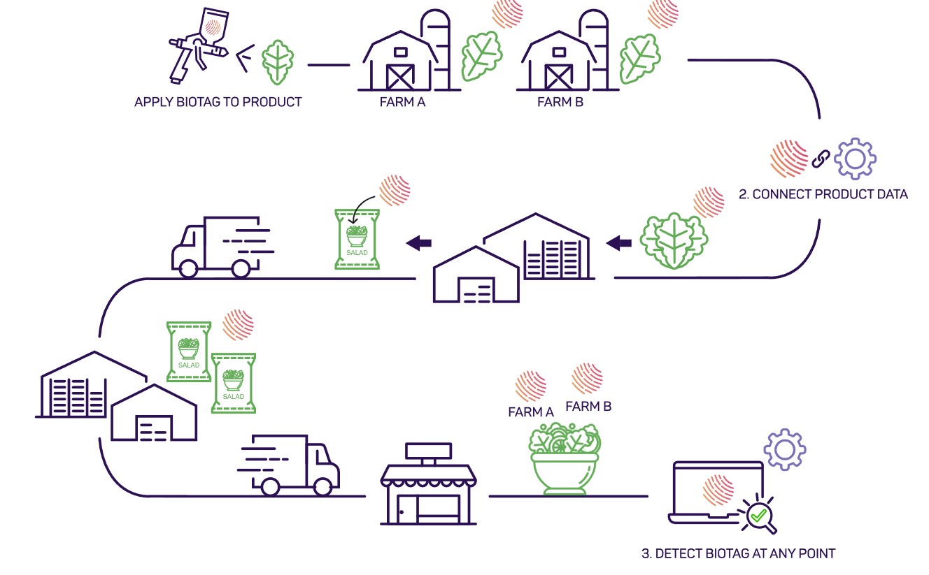 Канадська компанія Index Biosystems винайшла спосіб поєднати унікальне програмне забезпечення, одноклітинні мікроорганізми та воду для відстеження точки походження майже будь-якого типу харчових продуктів.
