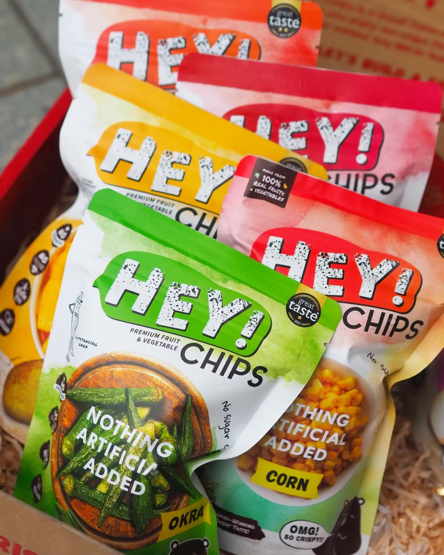 Процес пошуку ферми, яка забезпечуватиме виробництво здорових снеків сировиною, встановлення обладнання та відпрацювання технології зайняло для компанії три роки. Зараз Hey! Chips виготовляє свої снеки на заводах у Таїланді.