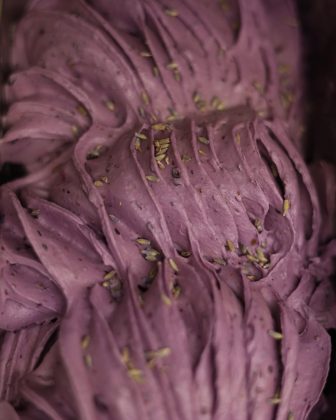 Наприклад, у фіолетовий колір десерт підфарбовують ягоди яфини