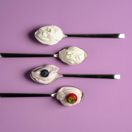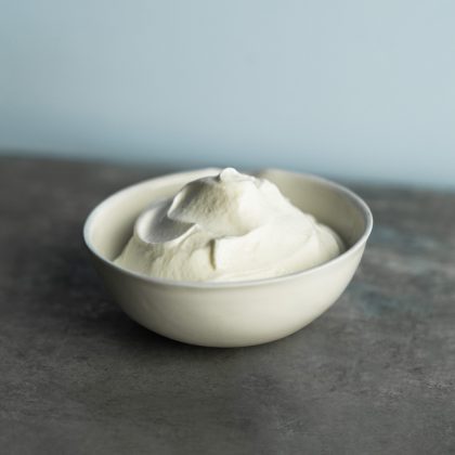 Skyr має кремову консистенцію, і виготовляється з частково знежиреного молока, але при іншій температурі, ніж йогурт.