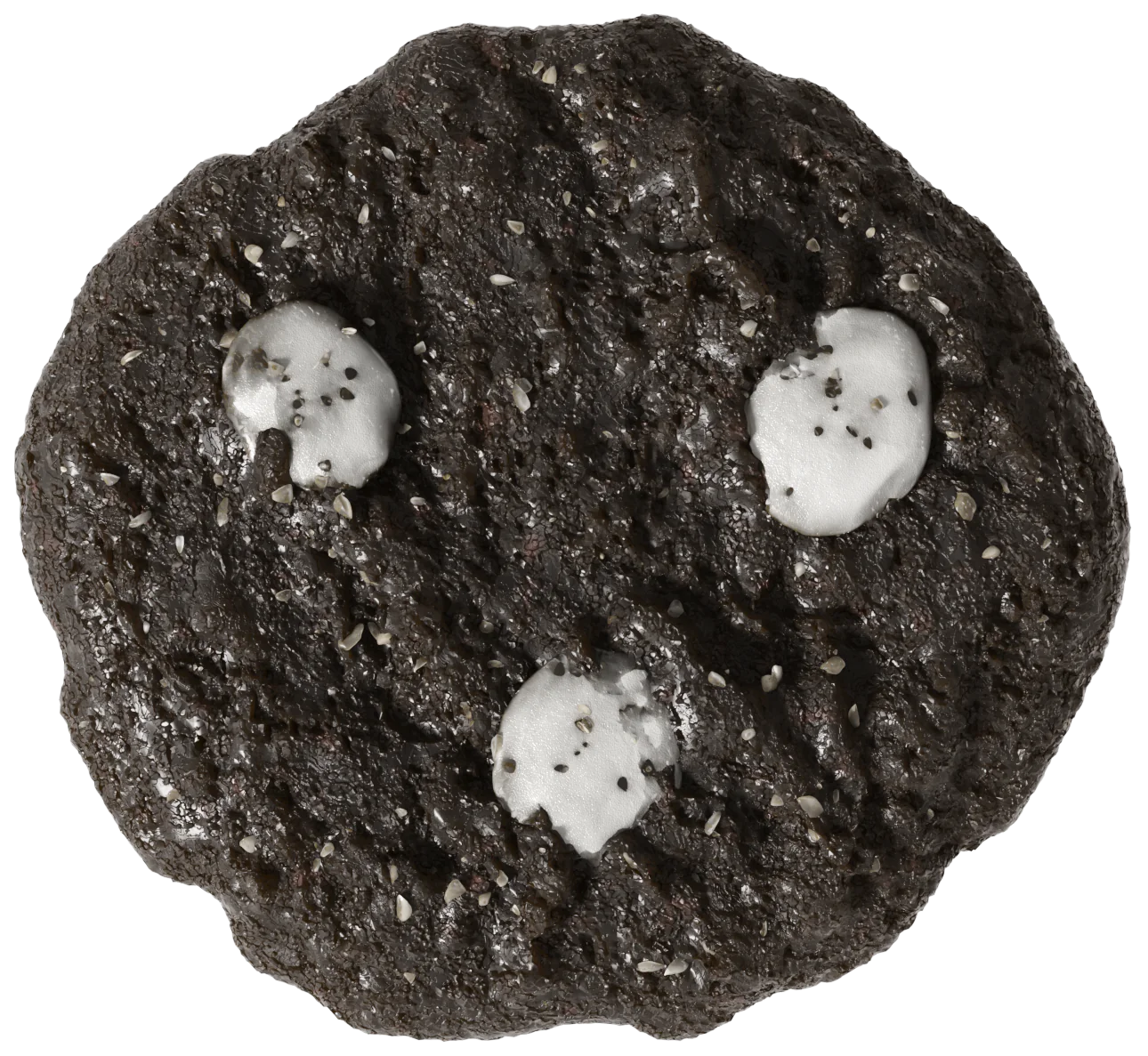 Це шоколадне печиво, яке складається із безглютенової суміші мигдалю, маніоки та кокосового борошна, стружки білого шоколаду, морської солі, кокосового цукру та грибного порошку.