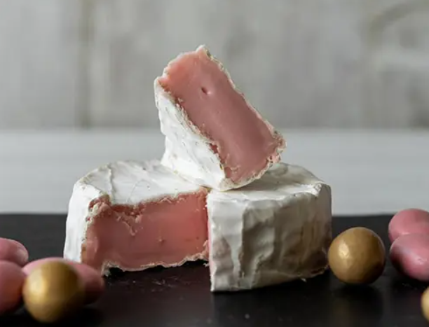 Сир має білу плісняву та рожевий колір у розрізі завдяки додаванню натурального карміну.