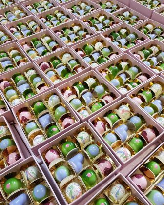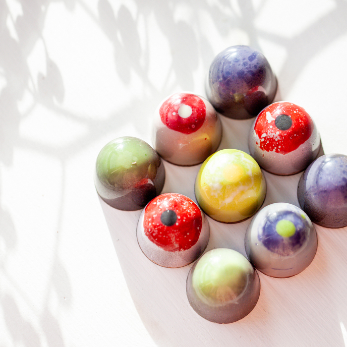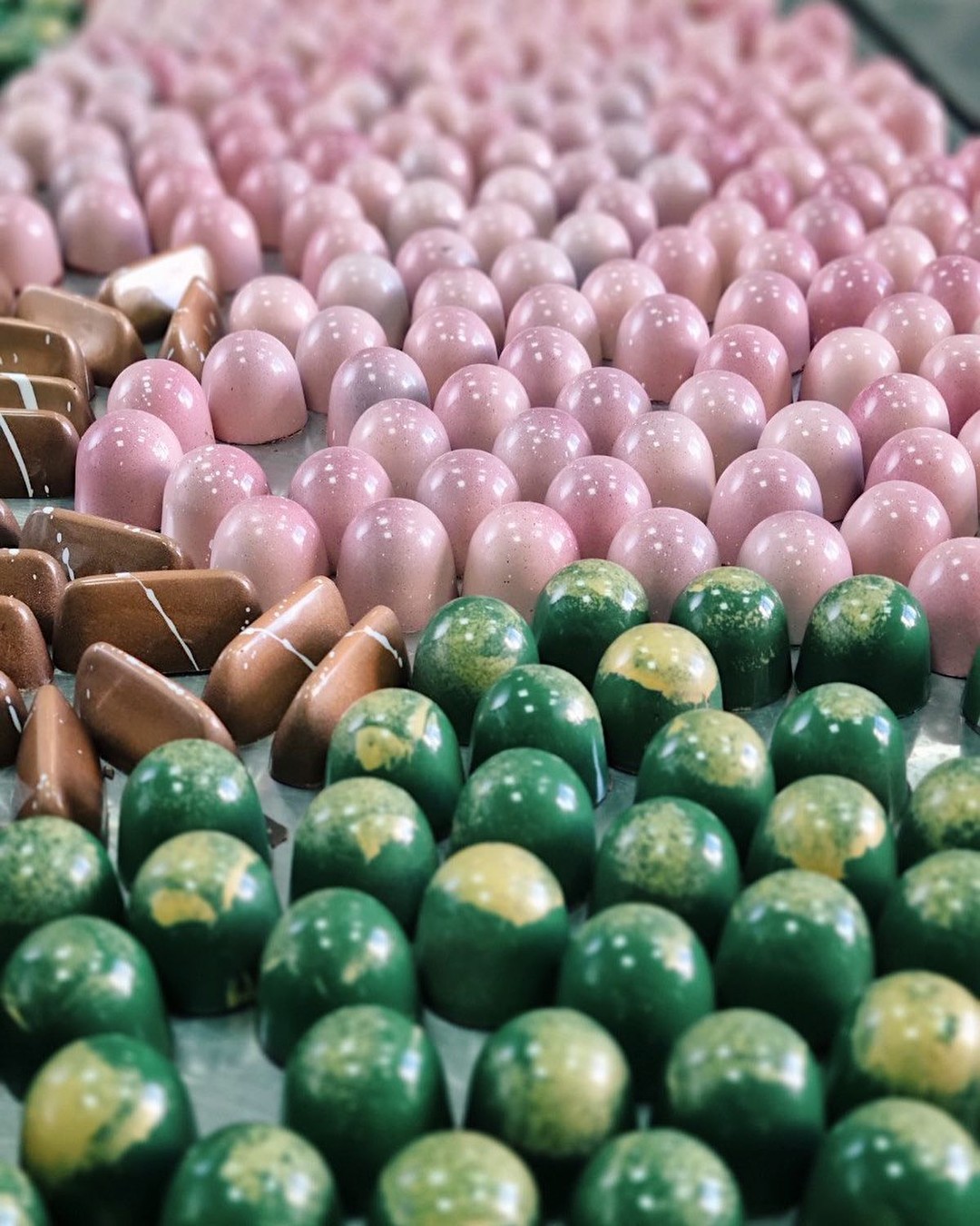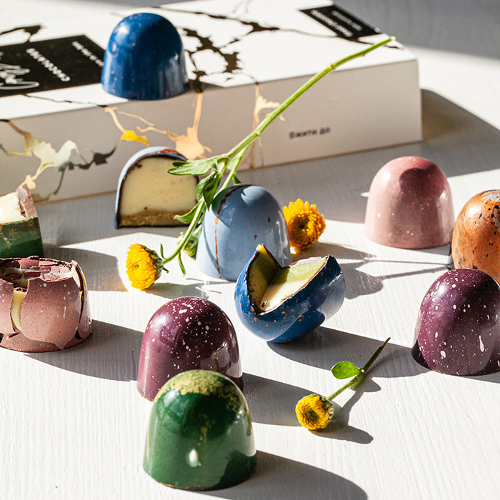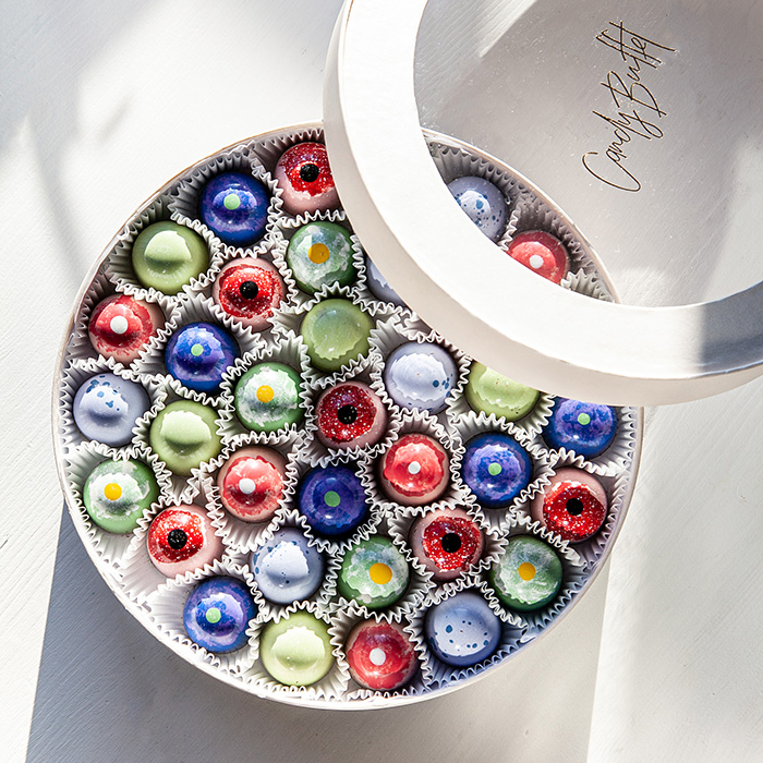 Цукерки роблять вручну та фарбують натуральним какао-маслом із французькими барвниками.