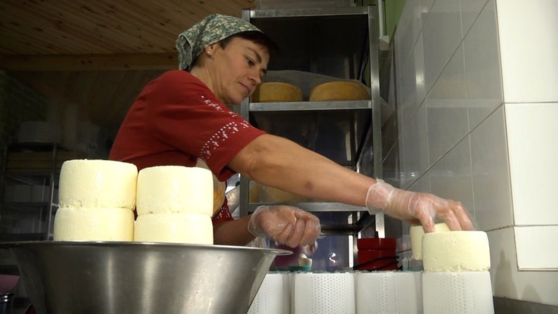 Щодня технологи тут переробляють до 500 літрів коров’ячого молока та виготовляють 45 кг продукції. Далі готовий сир від трьох місяців перебуває на дозріванні при температурі 12 градусів та вологості 85%.