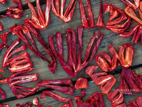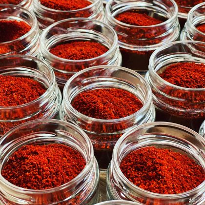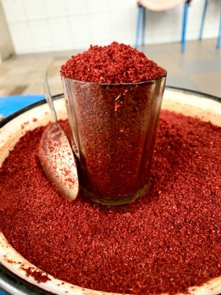 - Локальна паприка (“чукан піпер”) – солодкий перець, висушений на сонці та подрібнений в ступці вручну.