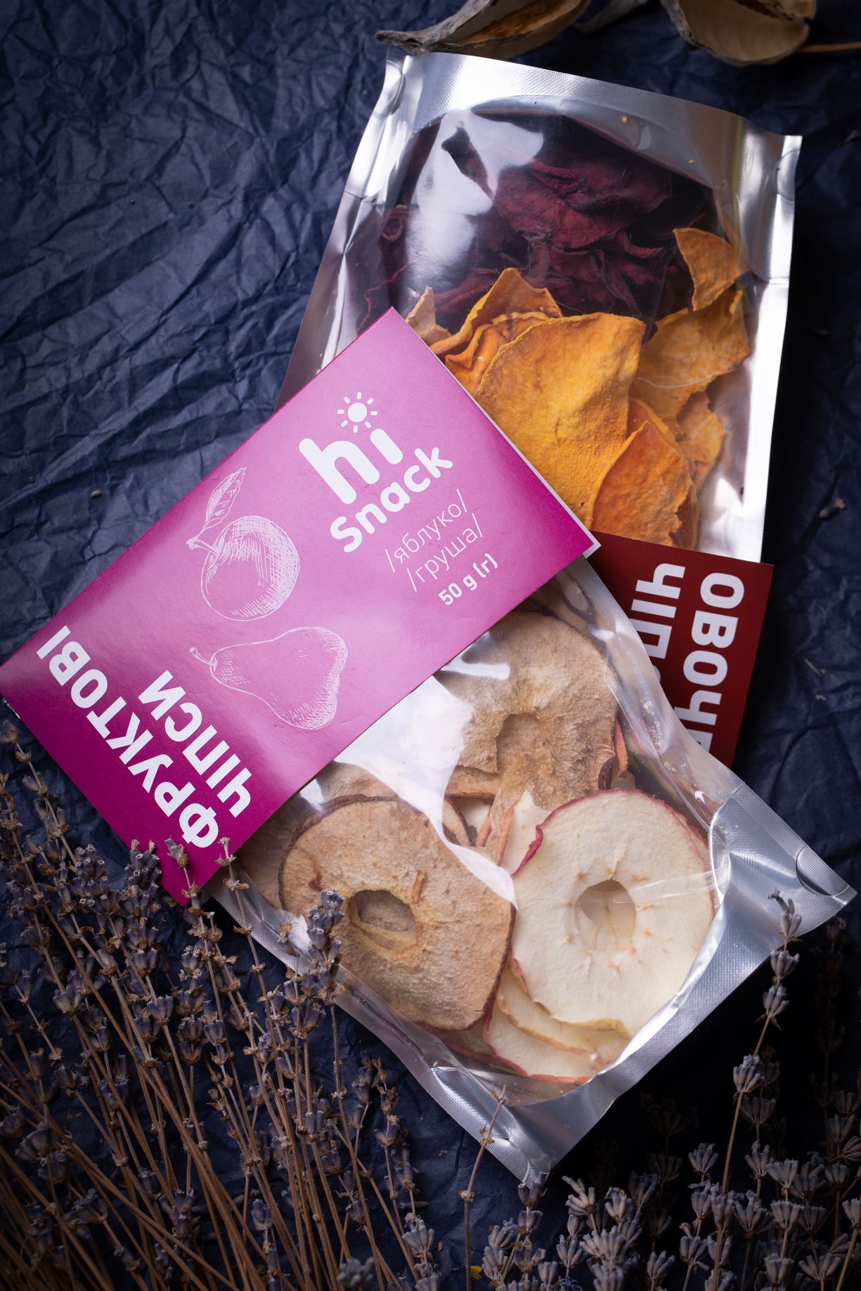 Зараз hi Snack виробляє чіпси не тільки з яблук, а і з інших фруктів та овочів – ананасів, ківі, буряку, апельсинів, полуниць, кокосів, груш та гарбузів.