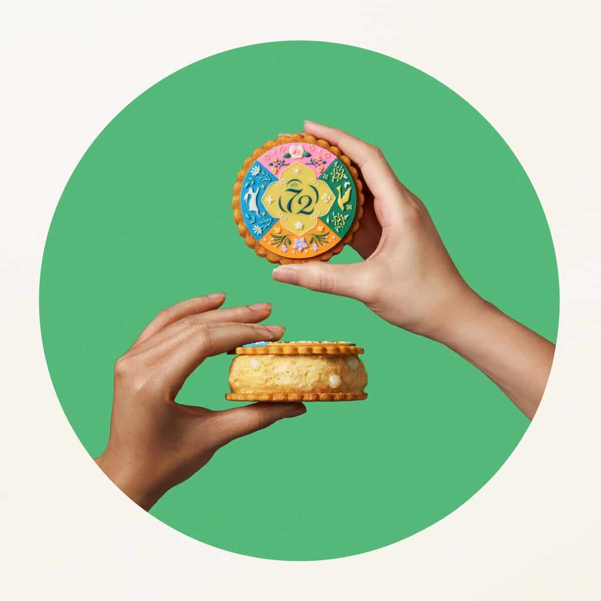 Особливої уваги заслуговує місячний торт Atlr.72 Flowering Mooncake, який виконаний у стилі сендвіч-печива і наповнений зефіром, виготовленим з фруктового пюре.