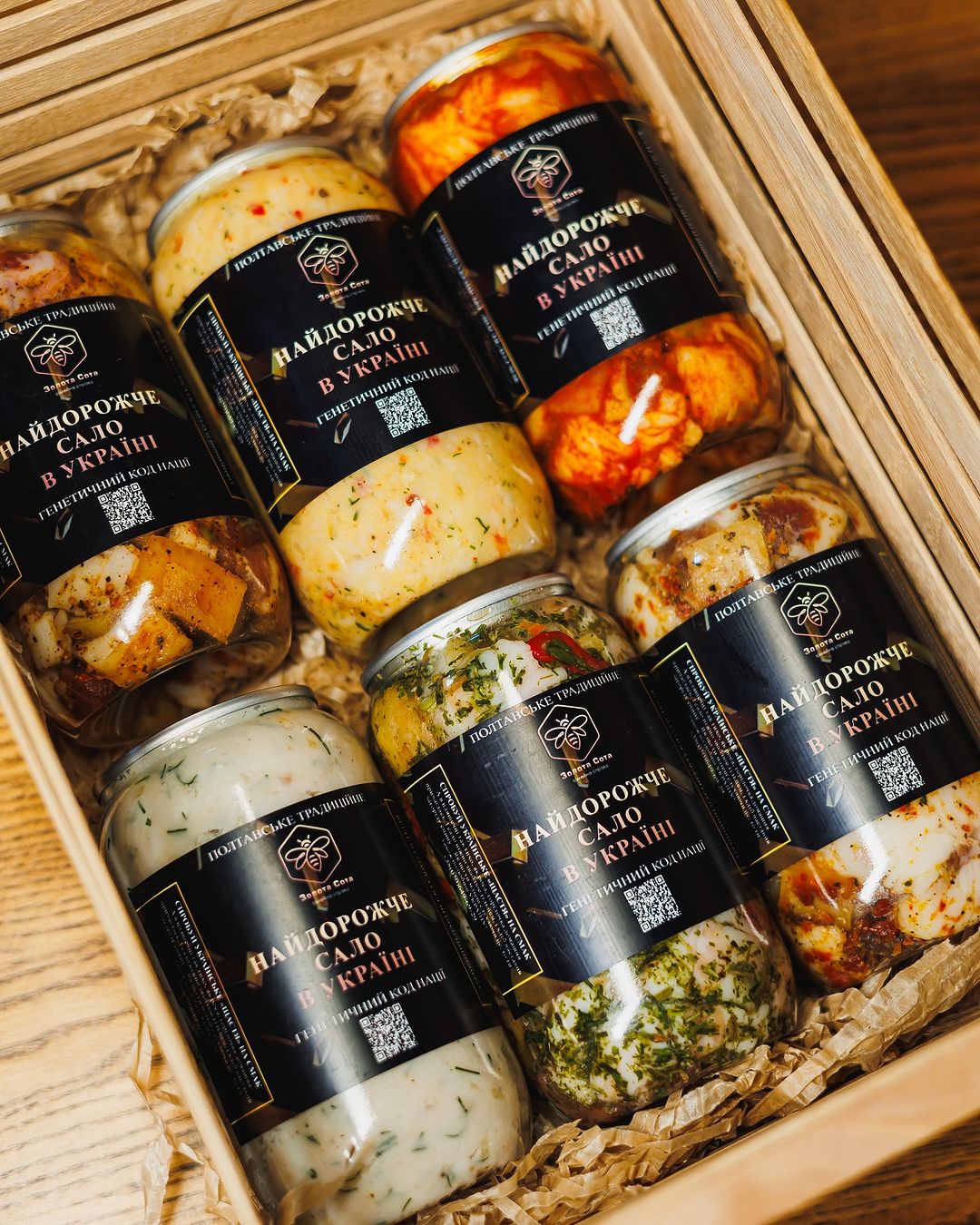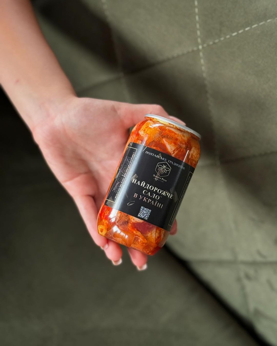 Засновники виробництва — подружжя Марина та Віталій Мостові, які раніше займалися кейтерингом, тепер виготовляють близько тисячі банок сала на місяць.