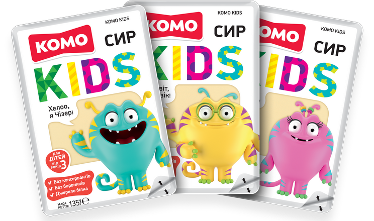 Для дітей бренд пропонує «Комо Kids», розроблений для малюків від 3 років. Цей сир має ніжну вершкову консистенцію, легко плавиться на гарячих бутербродах і підходить для дитячого харчування. Завдяки збалансованому складу корисні речовини засвоюються майже повністю, говорить виробник.