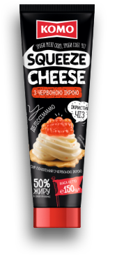 Окрім сиру у стіках, «КОМО» виготовляє безліч інших унікальних продуктів. Наприклад, squizze cheese, серед яких є сир із чорною та червоною ікрою.