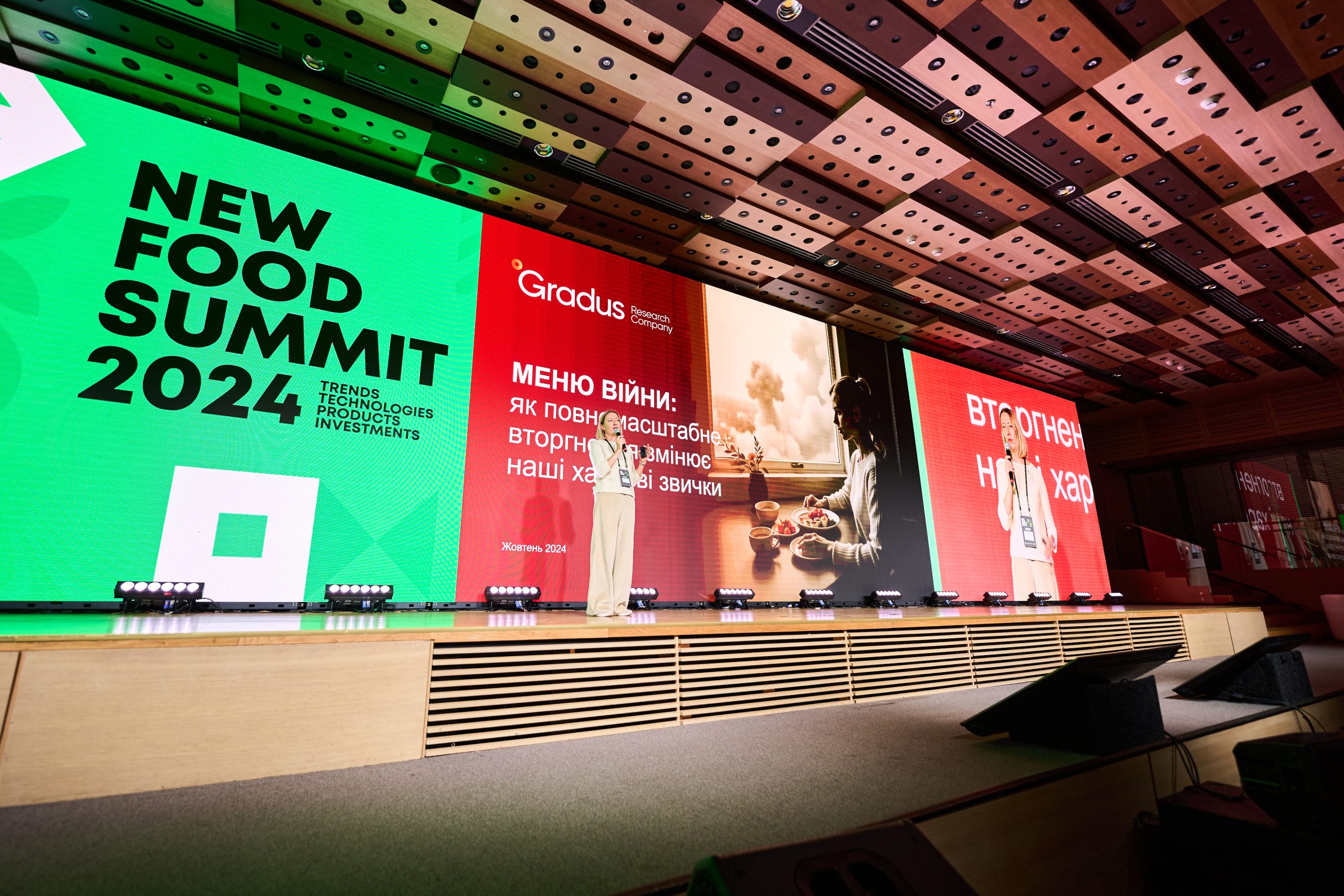 Євгенія Близнюк, соціологиня, засновниця і директорка дослідницької компанії Gradus Research, презентувала на New Food Summit інсайти зі спеціального дослідження “Меню війни: як повномасштабне вторгнення змінює харчові звички українців?”. “У 49% опитаних українців звички харчування змінилися від початку повномасштабного вторгнення. Серед молоді віком 18-34 роки цей показник навіть вищий — 54%. Найбільше впливають на харчові звички підвищення цін на продукти, тривалий стрес та наслідки атак ворога. Через зростання цін на харчових продуктів під час війни майже дві третини опитаних обирають дешевші продукти, майже половина респондентів частіше готує їжу вдома”.