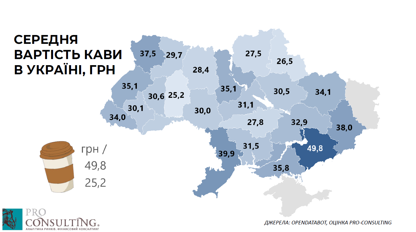 Зазначається, що середня вартість Еспресо в Україні у 2024 році зросла на 25% і сягнула 35 грн. Середній чек кав’ярень у 2023 році зріс на 20% через підвищення цін.