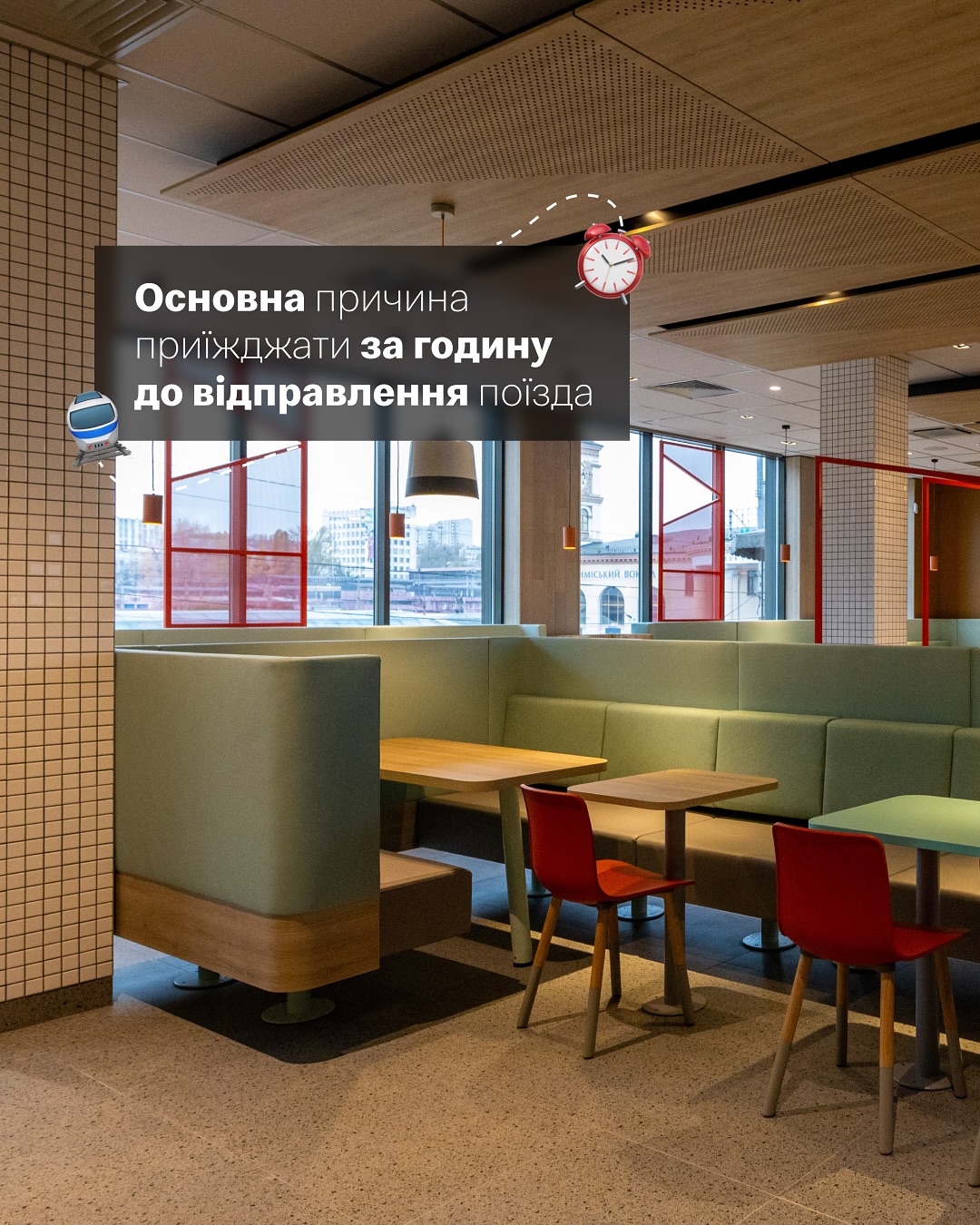 Зазначається, що загальна площа оновленого ресторану сягає 944 кв м, має 193 посадкових місця в залі та ще 88 на терасі. У закладі можна швидко й безконтактно робити замовлення на 11 двосторонніх терміналах самообслуговування, на касі чи через експрес-вікно.