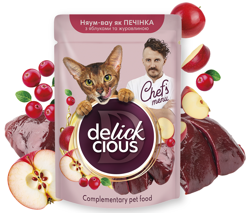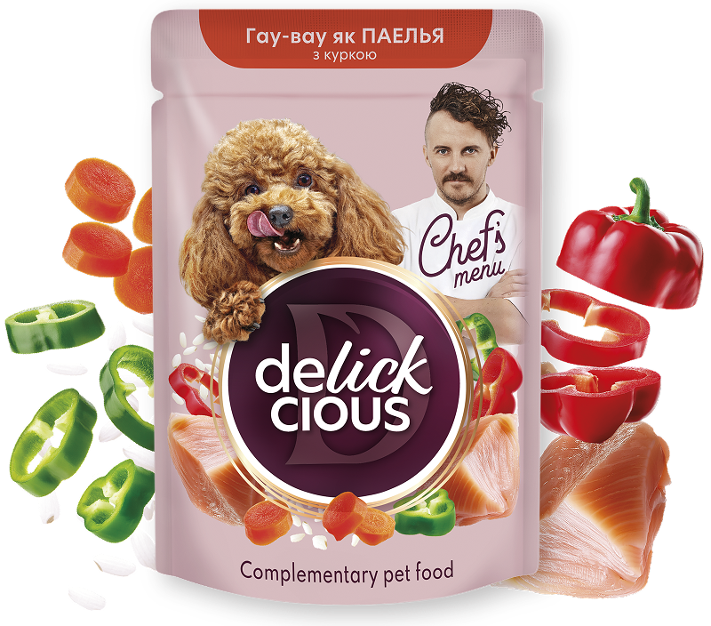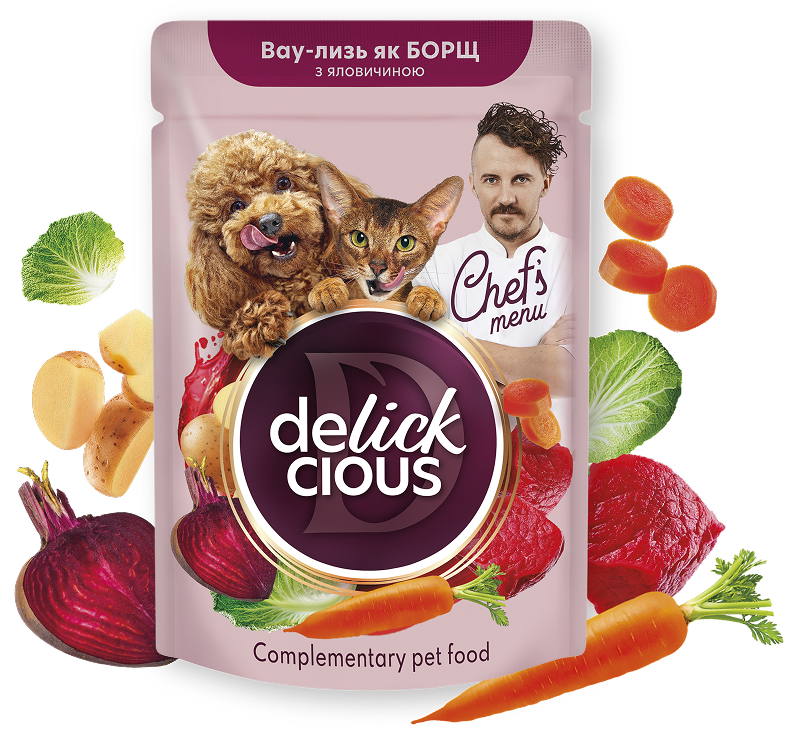 Лінійка Chef’s Menu від Delickcious перевертає уявлення про харчування котів і собак. Це вологий корм, який доповнює щоденний раціон, аби кожен котик і песик насолоджувався кожним шматочком.