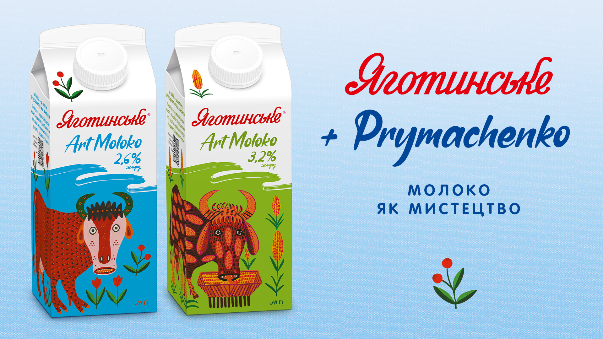 Корова у творчості Марії Примаченко – це значно більше, ніж просто свійська тварина. Це годувальниця і невід’ємна частина українського побуту. Вона є уособленням родючості, добробуту й турботи. Саме цей глибинний символізм і став відправною точкою колаборації «Яготинського» з Prymachenko Family Foundation.